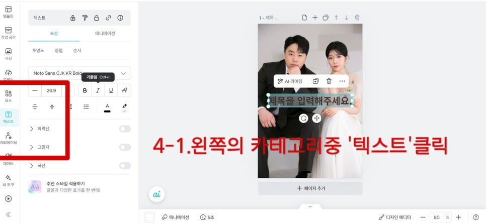 8.왼쪽 카테고리 중 '텍스트' 클릭