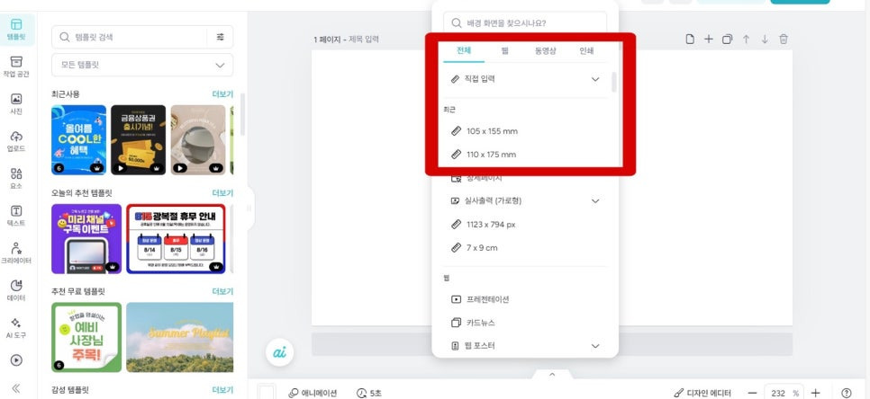 ◼ 전체 - 직접입력 - 아래원하는 '사이즈' 입력- 적용하기