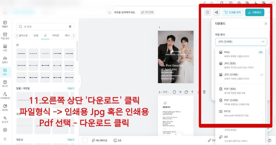 ◼ 파일형식 인쇄용 JPG or 인쇄용 PDF 선택 - 다운로드 클릭