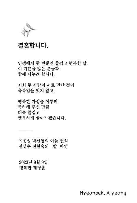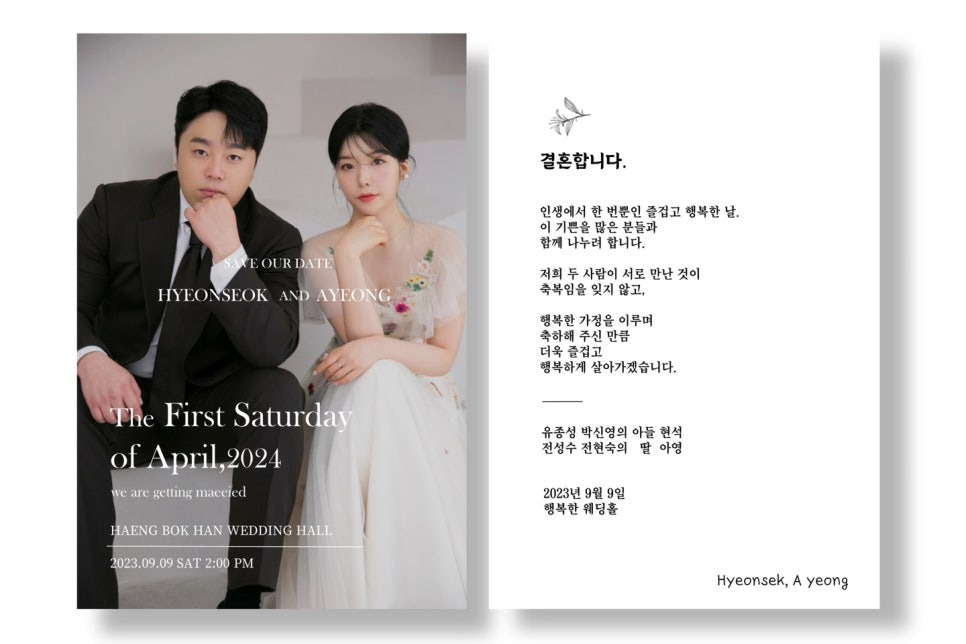 오른쪽은 제가 결혼식때 지인들께 나눠드린 셀프 청첩장입니다.